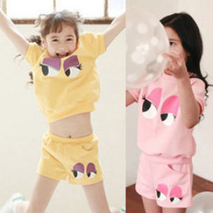 【春夏超優質商品棉質套裝2件組】精緻棉料可愛卡通圖案套裝2件組-休閒風7分褲+短袖上衣/春夏兒童服飾100-140